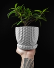 An artistic planter inspired by dragon scale patterns, created with 3D printing. Perfect for decorative plants and succulents.