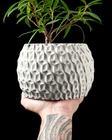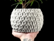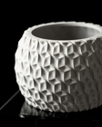 A geometric planter with a hexagonal shape, created using 3D printing. Its modern look makes it suitable for succulents and decorative plants.