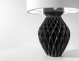 A sleek, modern table lamp 3D-printed from eco-friendly PLA. The sculpted diffuser delivers a soft ambient glow, while the stable base keeps the lamp secure on a bedside table, console, or desk.