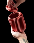 A textured 3D printed container with ridged design. Durable and stylish, it’s suitable for cosmetics, stationery, or small accessories.