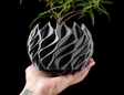 Compact planter with a subtle twisted profile that adds movement without visual noise.